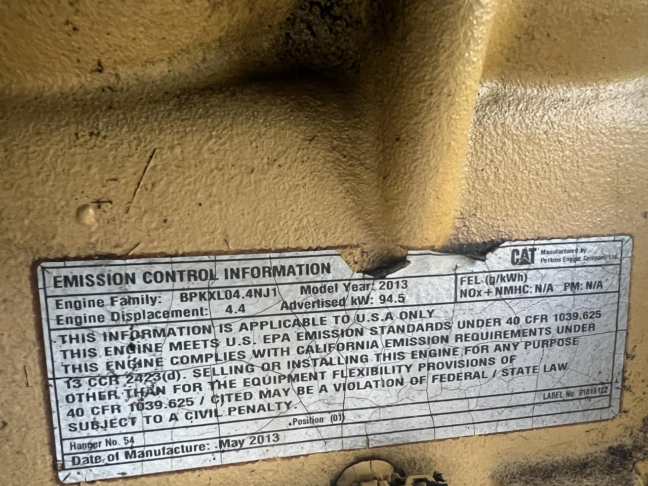 - Engine DescriptionC4.4 CAT Industrial Engine, Year -2015, US EPA Tier 3 Pre Emission Engine