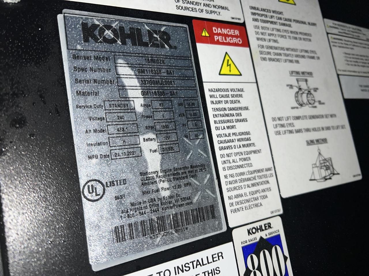 __15 kW Diesel Kohler Gen Set, Year – 2021, 5.5 Hours, with Sound Attenuated Enclosure and Base Fuel Tank, US EPA Tier 3 Pre Emissions Engine