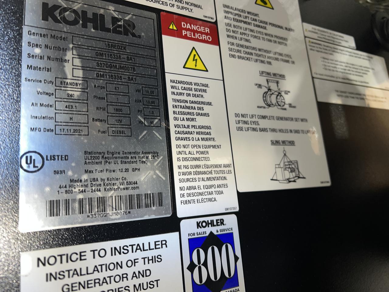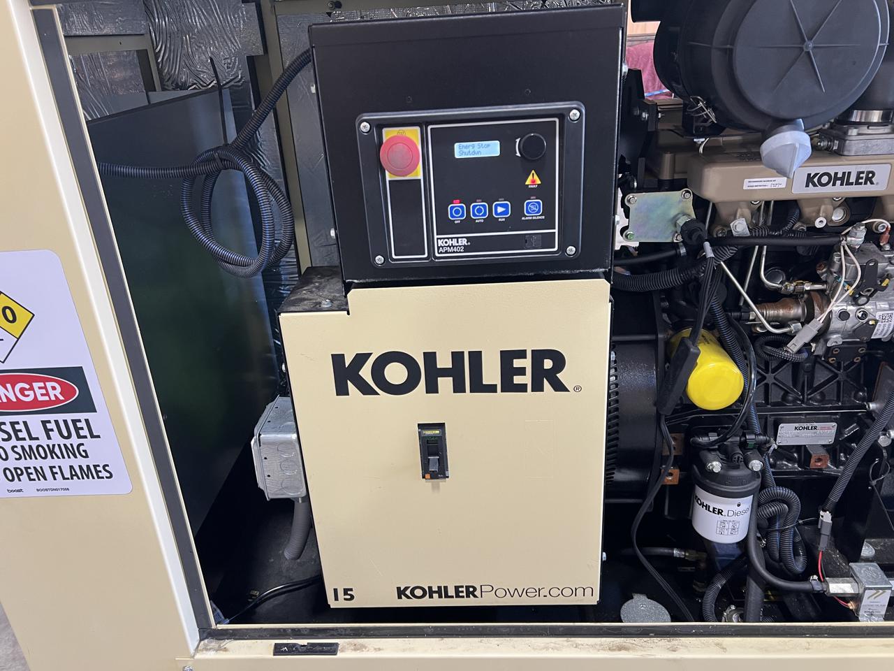 __15 kW Kohler Diesel Gen Set, Year – 2021, 9 Hours, with Sound Attenuated Enclosure and Base Fuel Tank, US EPA Tier 3 Pre Emission Engine