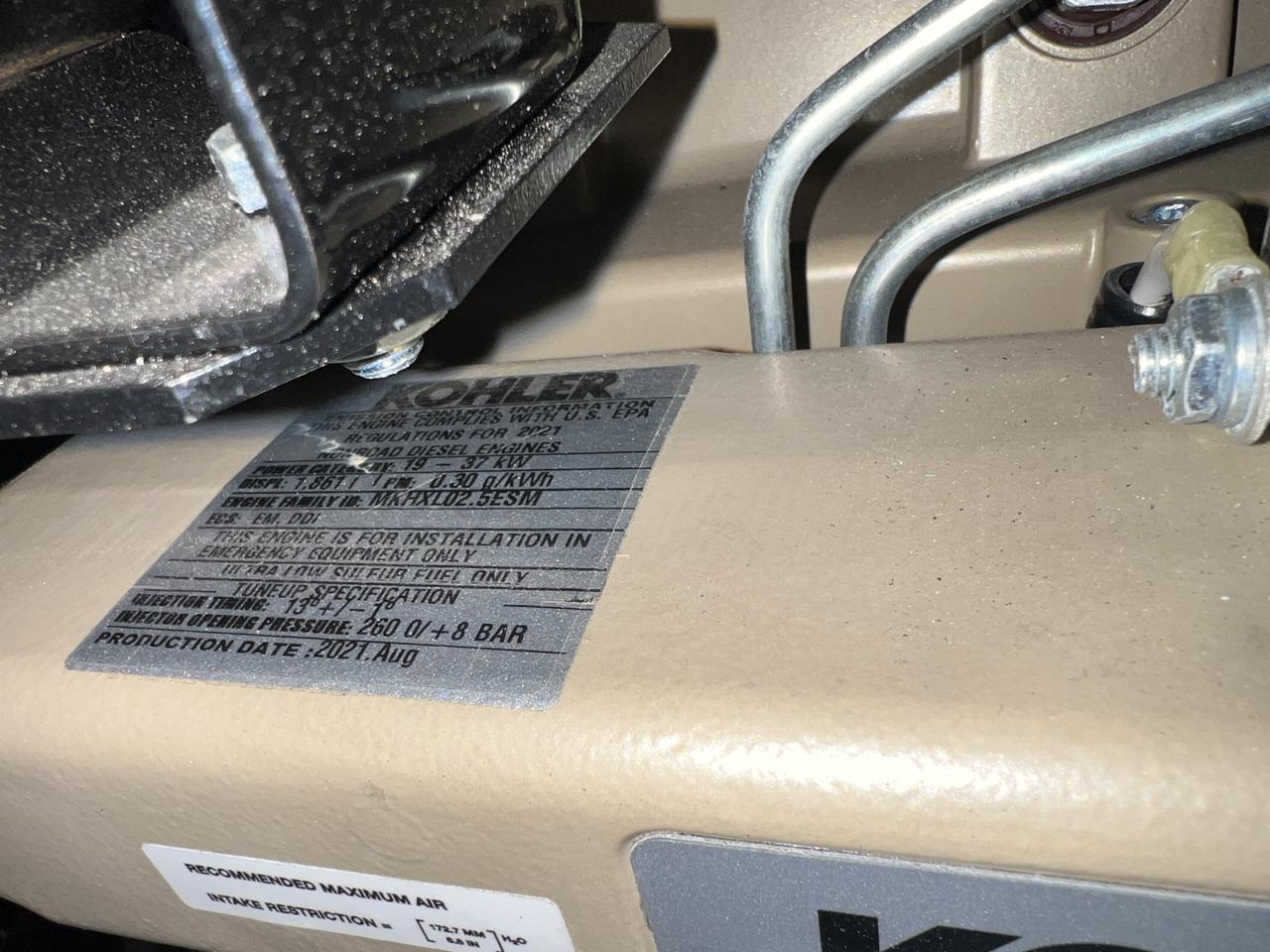 - Engine Description15 kW Kohler Diesel Gen Set, Year - 2021, 9 Hours, with Sound Attenuated Enclosure and Base Fuel Tank, US EPA Tier 3 Pre Emission Engine