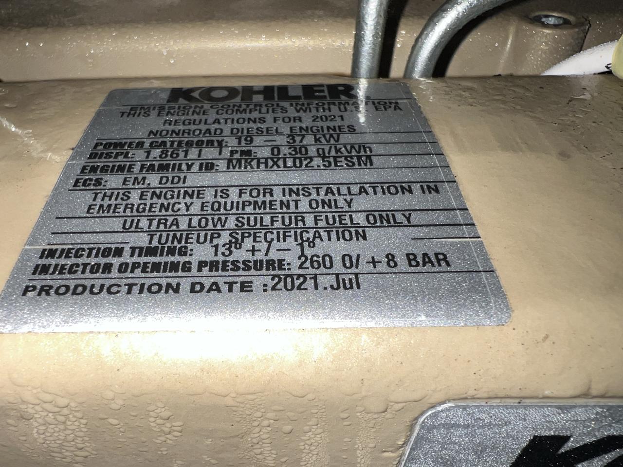 - Engine Description15 kW Kohler Diesel GenSet, Year - 2021, 11 Hours, with Sound Attenuated Enclosure and Base Fuel Tank, US EPA Tier 3 Pre Emissions Engine