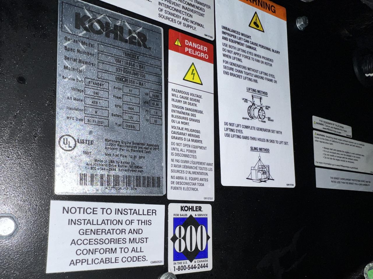 __15 kW Kohler Diesel GenSet, Year – 2021, 11 Hours, with Sound Attenuated Enclosure and Base Fuel Tank, US EPA Tier 3 Pre Emissions Engine