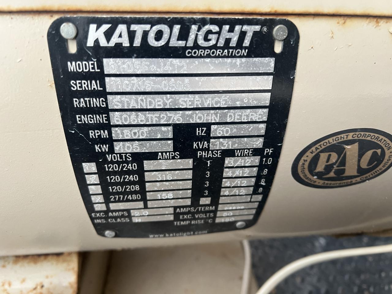 - Engine Description105 kW Portable Katolite Genset with Enclosure and Base Fuel Tank, 6.8 Liter John Deere Engine