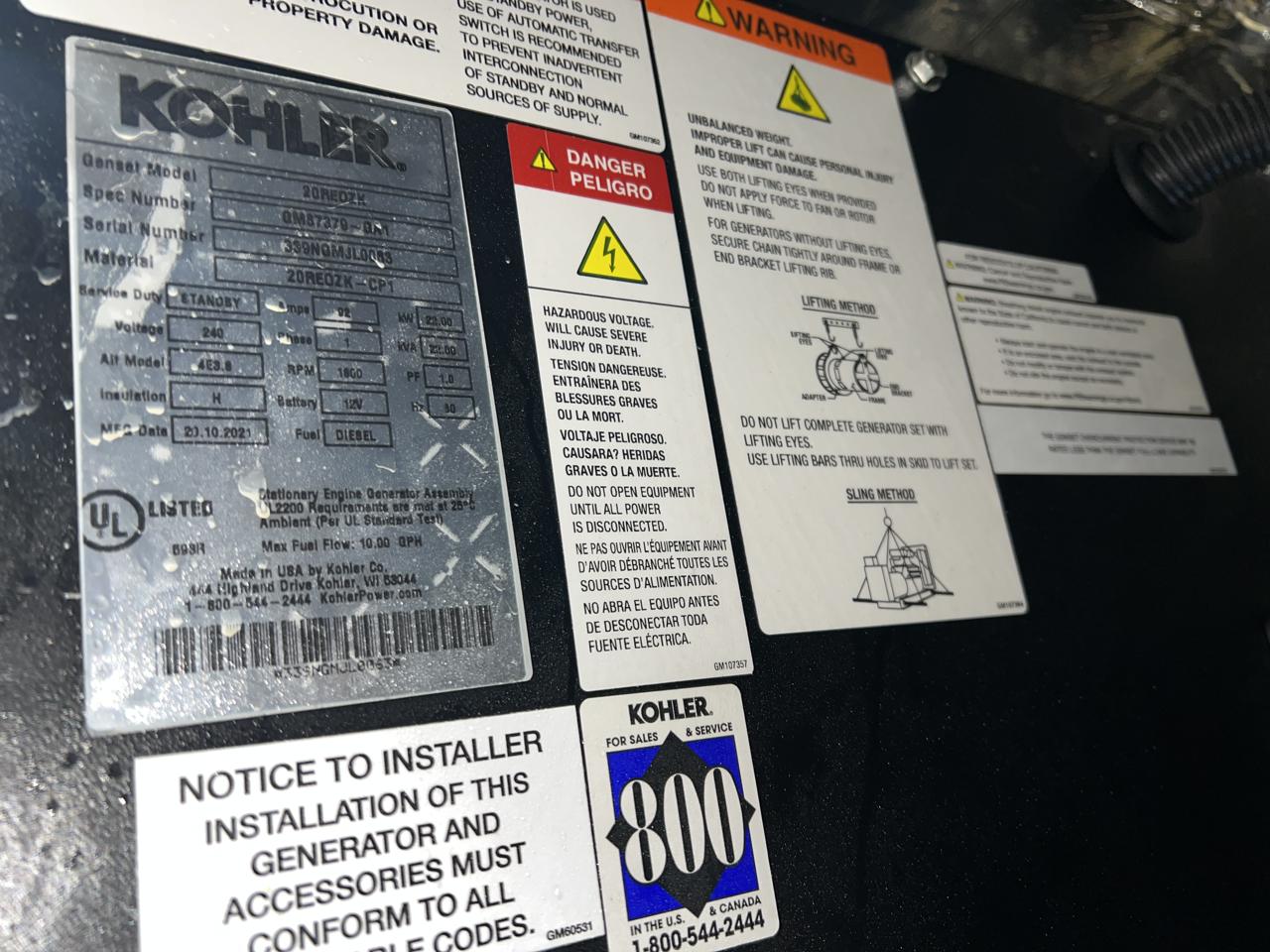 - Engine Description22 kW Kohler Diesel Gen Set, with Sound Attenuated and Base Fuel Tank, Year - 2021, 8.8 Hours, US EPA Tier 3 Pre Emission Engine