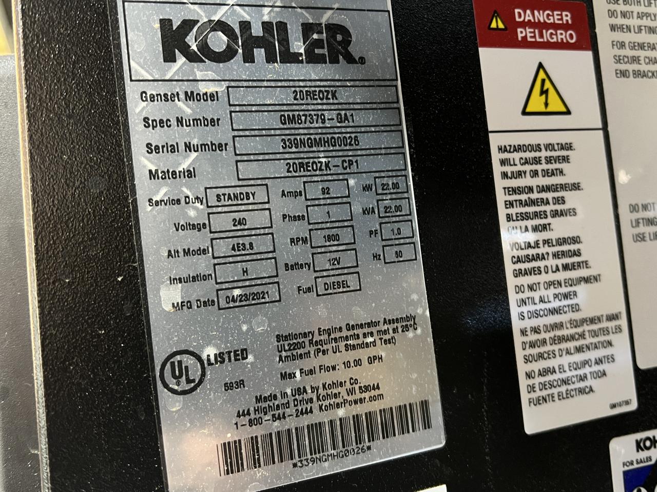 __22 kW Kohler Diesel Gen Set, Year – 2019, Unused Surplus, Sound Attenatued Enclosure and Base Fuel Tank, 0 Hours, US EPA Tier 3 Pre Emission Engine