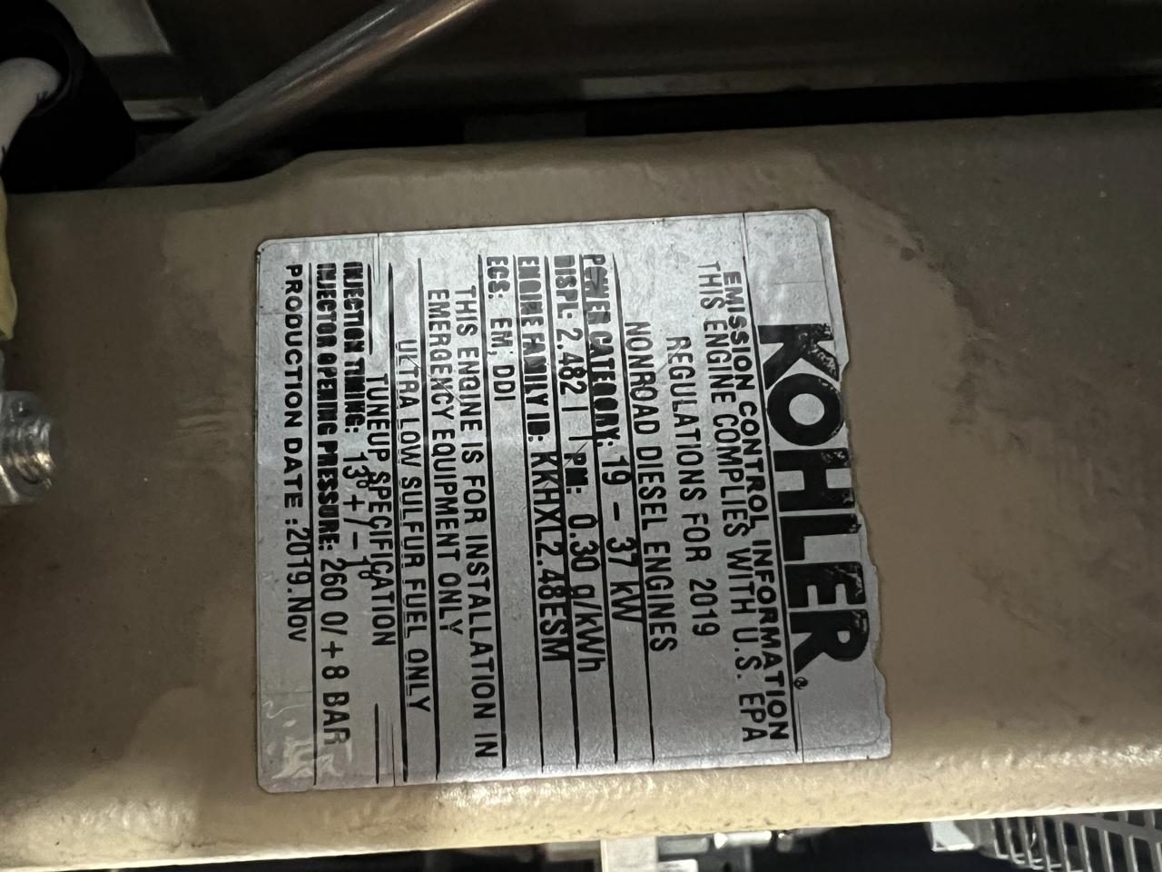 - Engine Description22 kW Kohler Diesel Gen Set, Year - 2019, Unused Surplus, Sound Attenatued Enclosure and Base Fuel Tank, 0 Hours, US EPA Tier 3 Pre Emission Engine