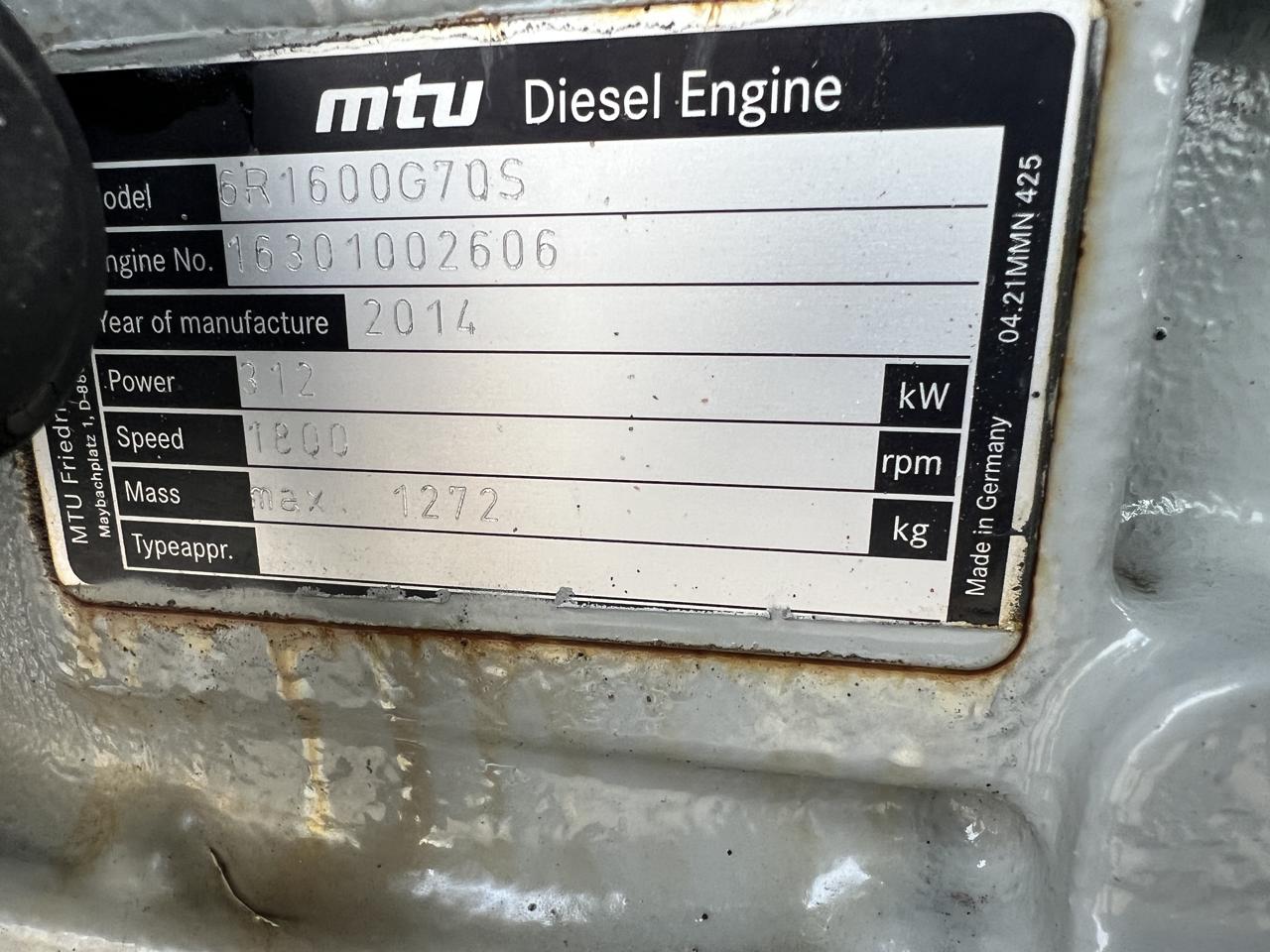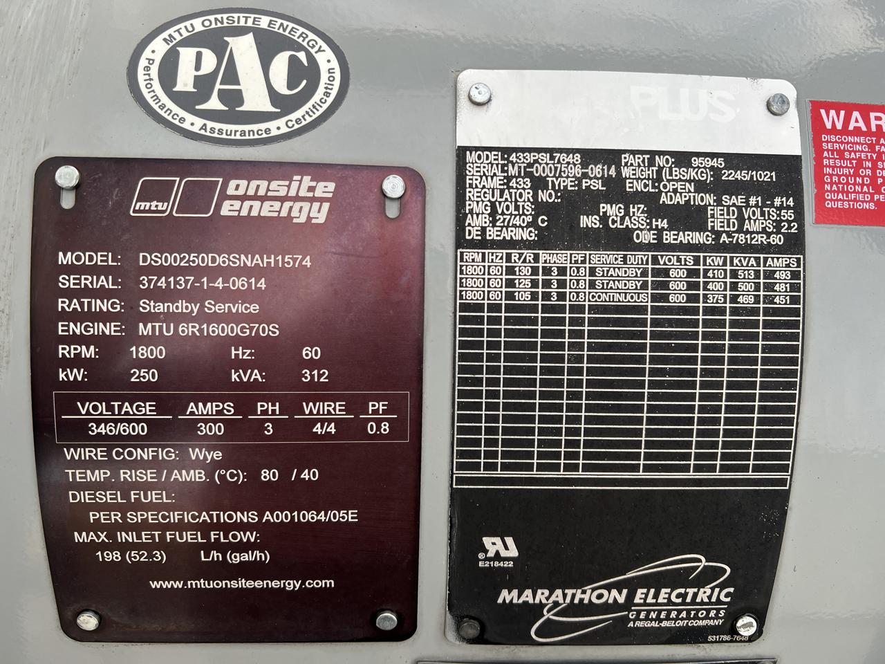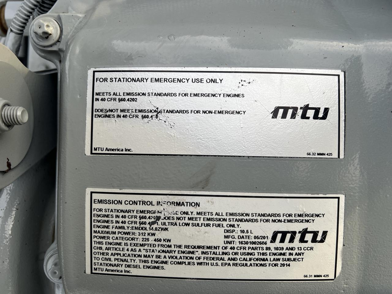 - Engine Description250 kW Mtu Gen Set, New Surplus, Year - 2014, 0 Hours, US EPA Tier 3 Pre Emission Engine