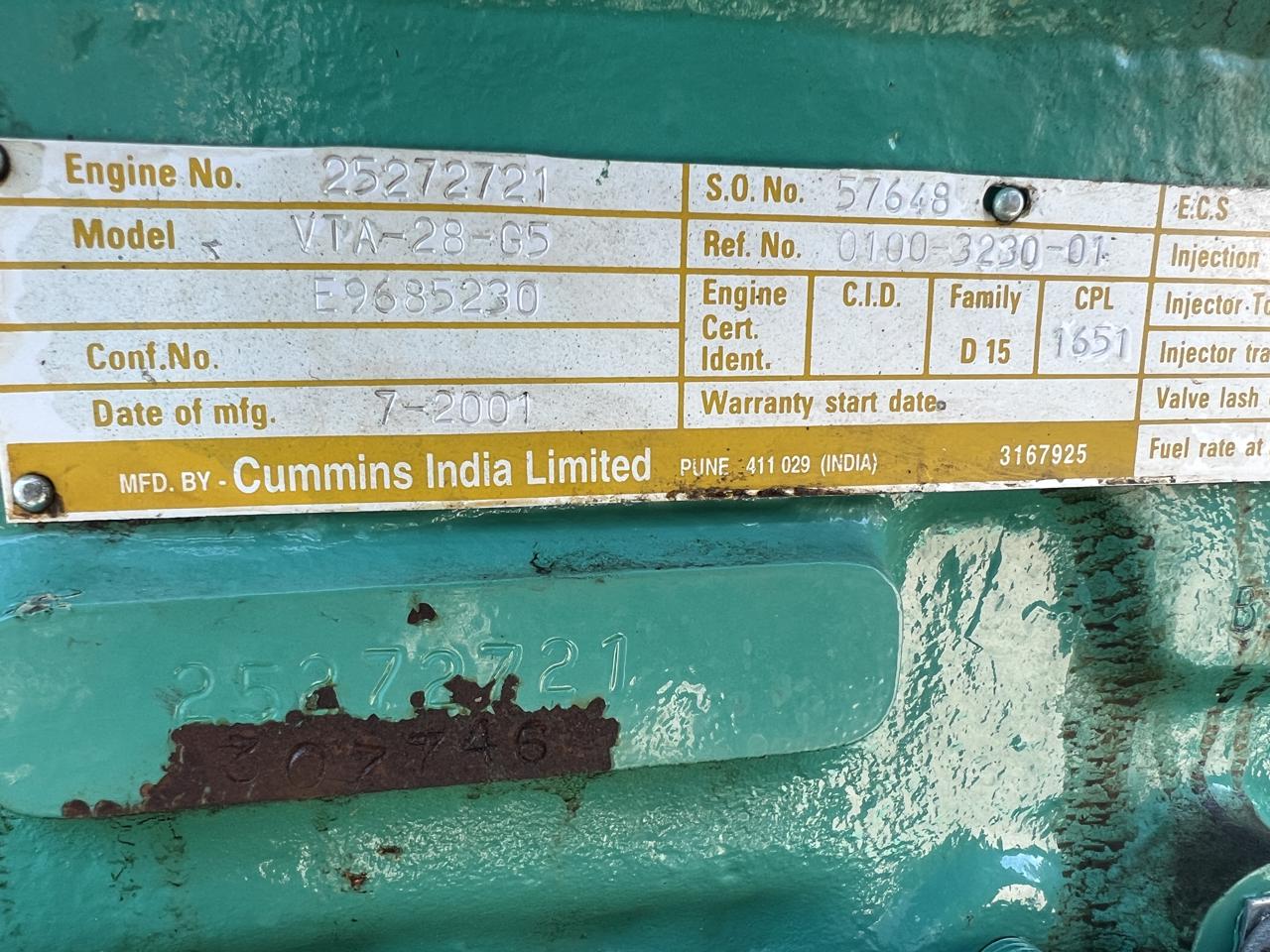 - Engine Description600 kW Onan/Cummins Open Skid GenSet, VTA28 Liter Cummins Engine, Year -2001, 225 Hours