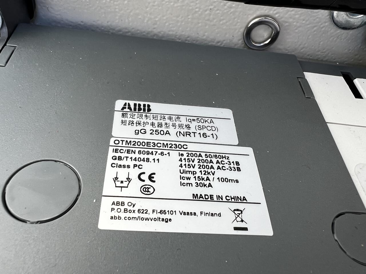 200 Amp ABB Automatic Transfer Switch, Service Entrance Rated, Nema 3 Enclosure